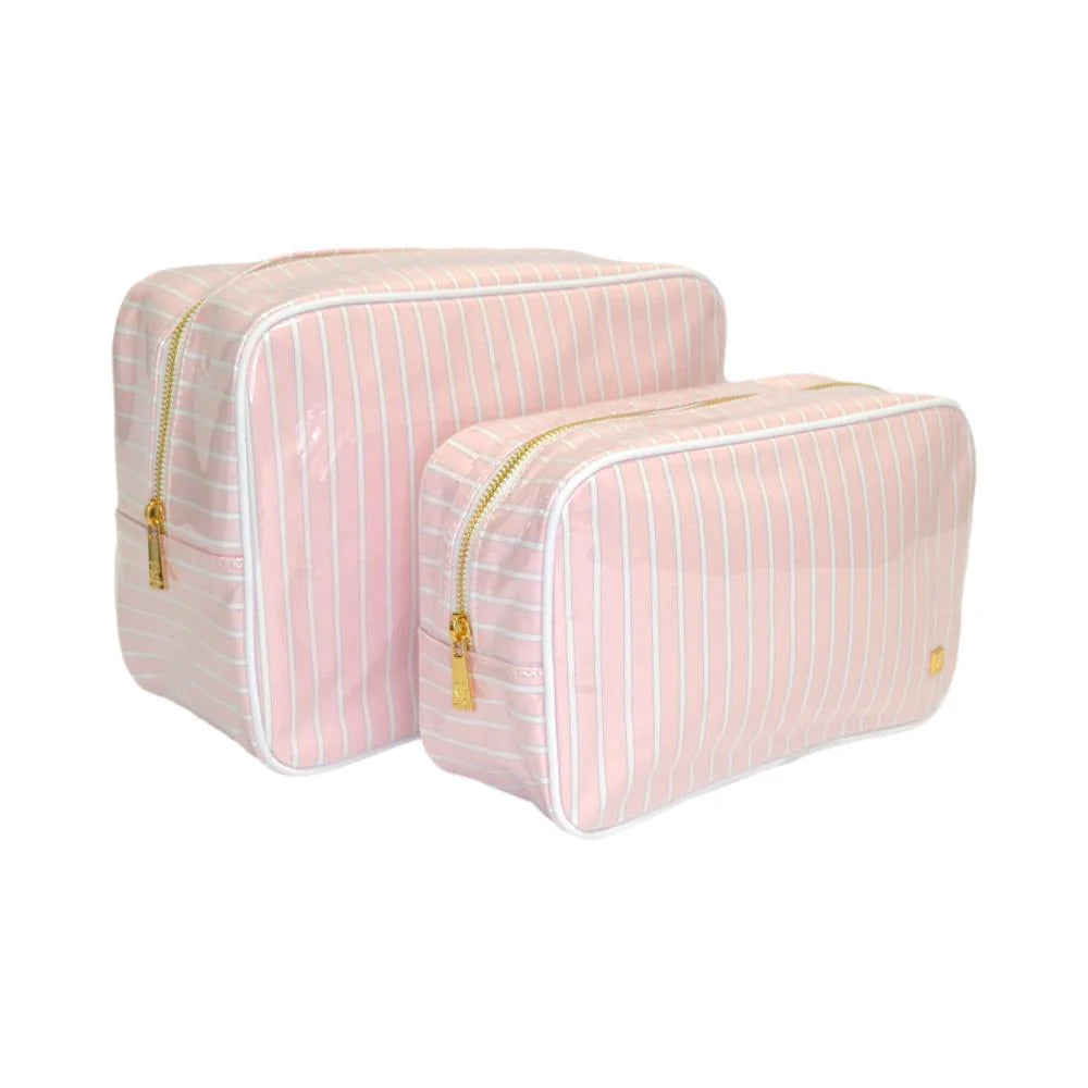 These beautiful glossy XL Glam/Go Glam Bag Set are perfect for makeup, makeup brushes, skincare products, nail polish, jewelry, and any additional accessories. With an open interior and back wall slip pocket this is the perfect catch-all to keep you organized.